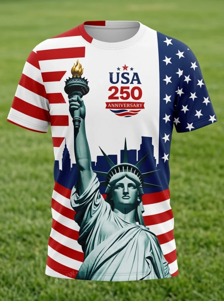 一张专业的短袖T恤【一个圆领短袖T恤,T恤正面满版印花为图1的图案,印花覆盖整件T恤正面,风格为全幅数码印花】摄影图,衣服正视图,隐形模特效果,衣服看起来像被一个隐形人穿着,呈现 3D 形状,直立站立,精细纹理,高细节,影棚灯光,背景是草坪,8K 分辨率,极简风格。