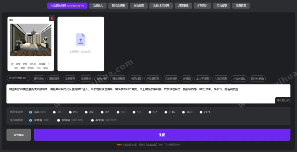 在建筑、室内及景观设计领域,SketchUp(SU)因其建模的高效性而广受欢迎。然而,传统的渲染过程(如使用 V-Ray 或 Lumion)往往伴随着复杂的材质调节、灯光布置以及漫长的等待时间。